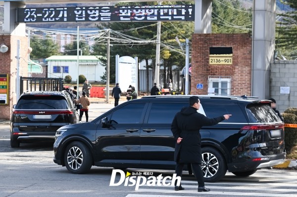 지민과 정국은 검은 미니밴을 이용 한 채 입소대대로 향했다. 미니밴 안은 사회복무요원으로 대체복무 중인 슈가와 휴가 나온 제이홉이 함께했다. 별도의 인사와 이벤트는 뒤로 하고 훈련소로 들어섰다.