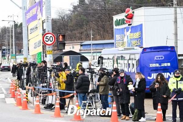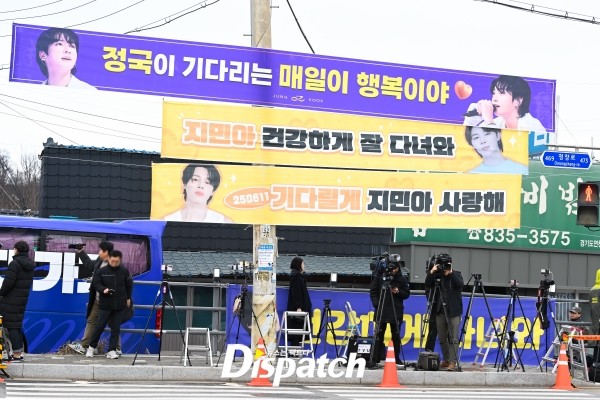 입소대대 주변은 지민과 정국의 군 생활을 응원하는 버스와 취재진만 있을 뿐, 소규모의 팬들만 현장을 찾았다.