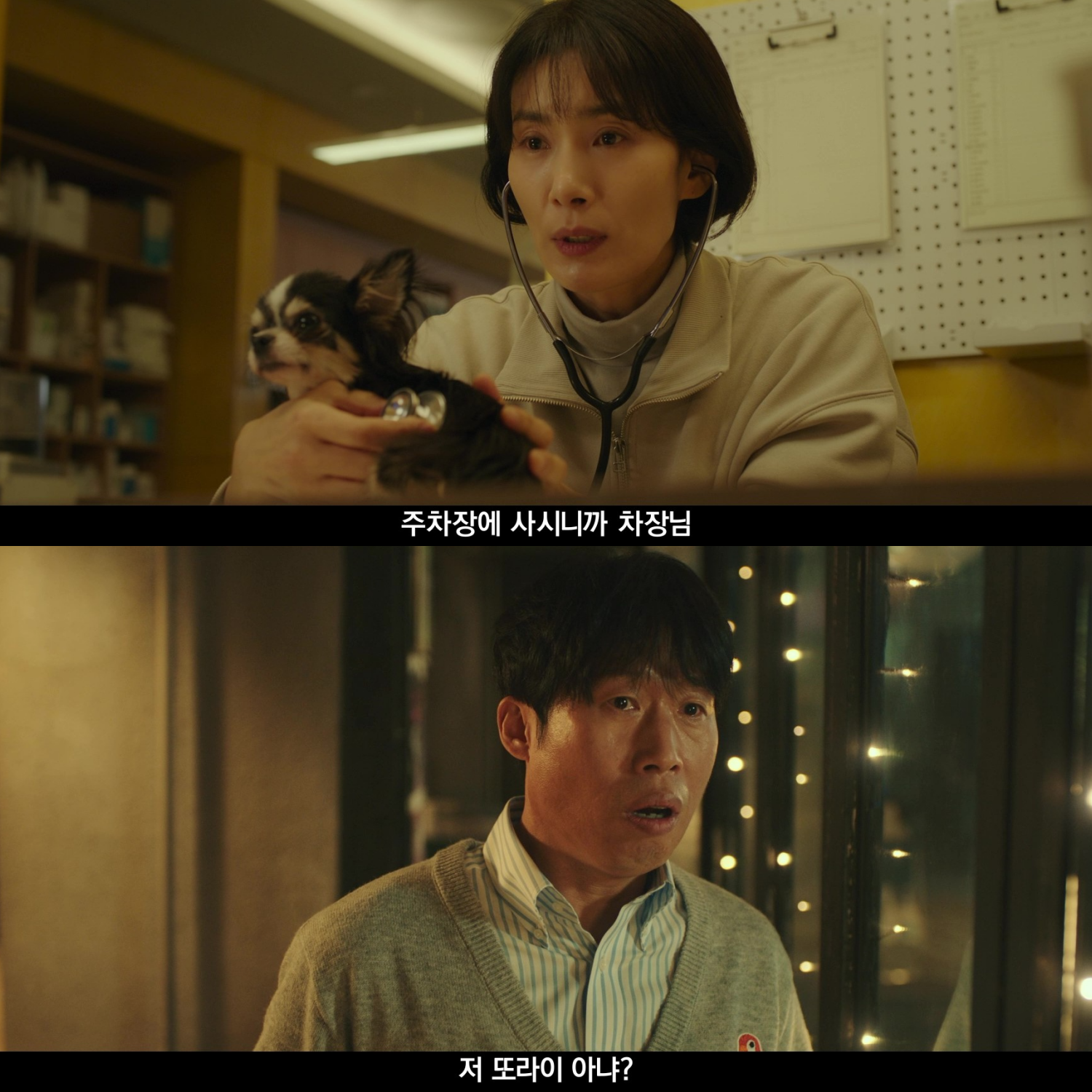 수의사 김서형(진영 역)도 독특한 매력을 뽐냈다. 주차장에 사는 강아지를 '차장님'이라고 불렀다. 유해진은 "또라이 아니냐"며 황당해했다.