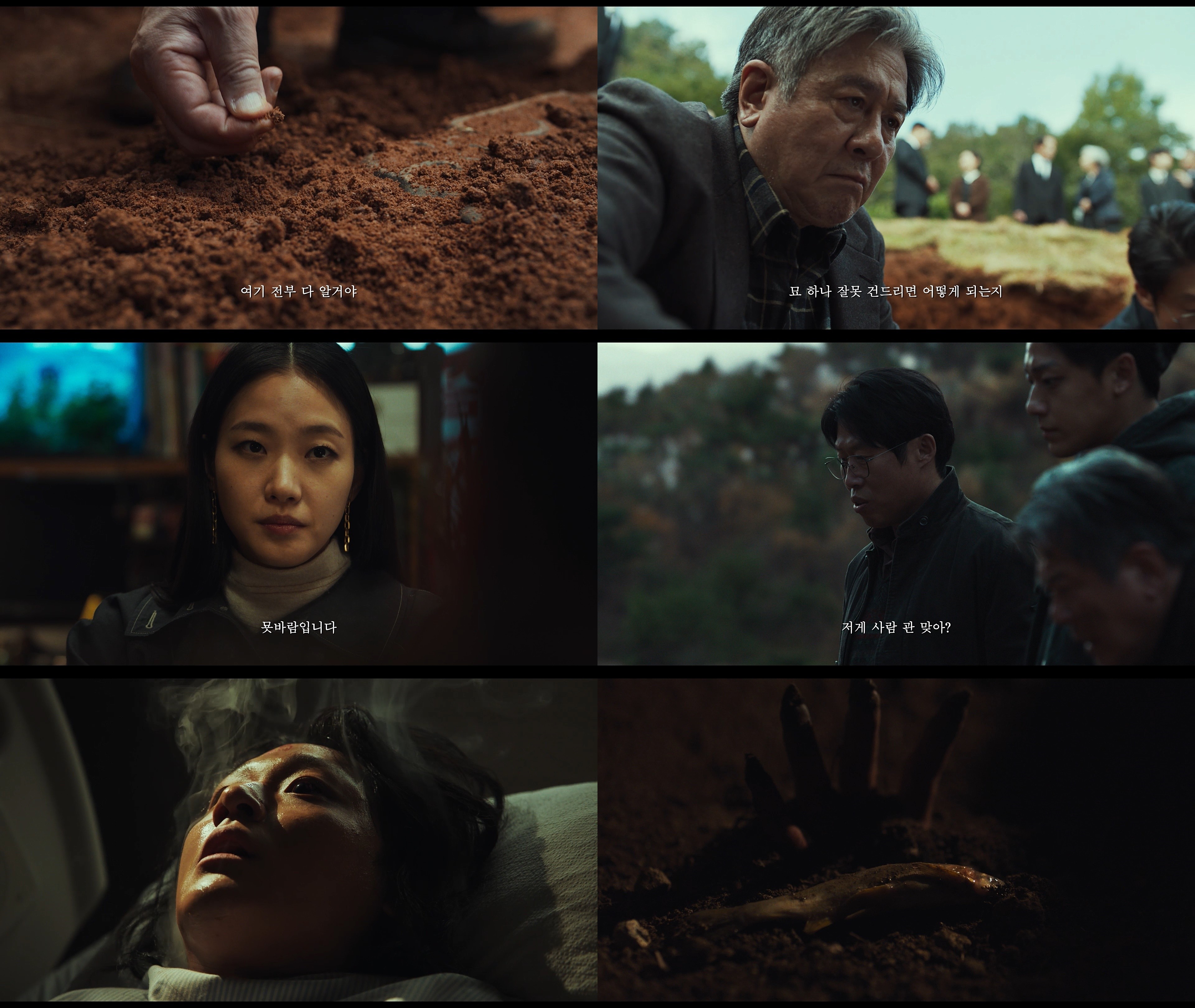 먼저, 최민식은 풍수사 상덕 역을 맡았다. 흙을 만지며 "여기 전부 다 알 거야. 묘 하나 잘못 건드리면 어떻게 되는지"라고 경고했다.