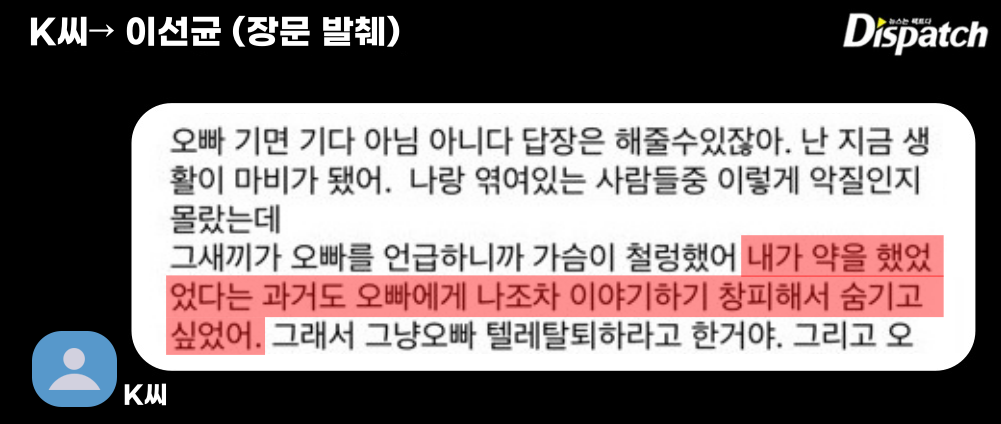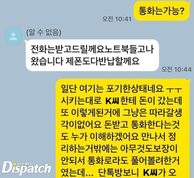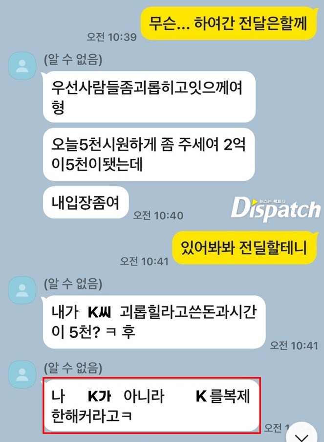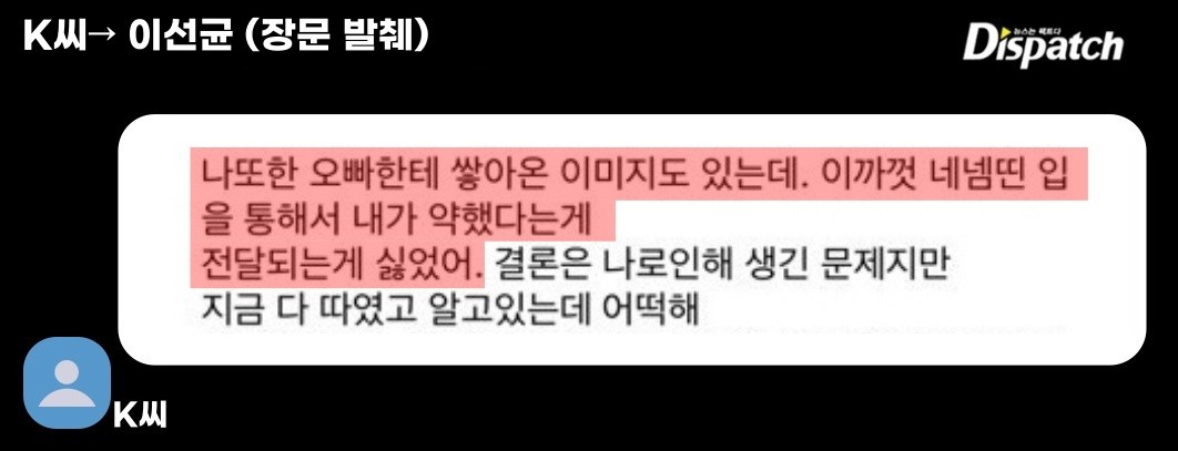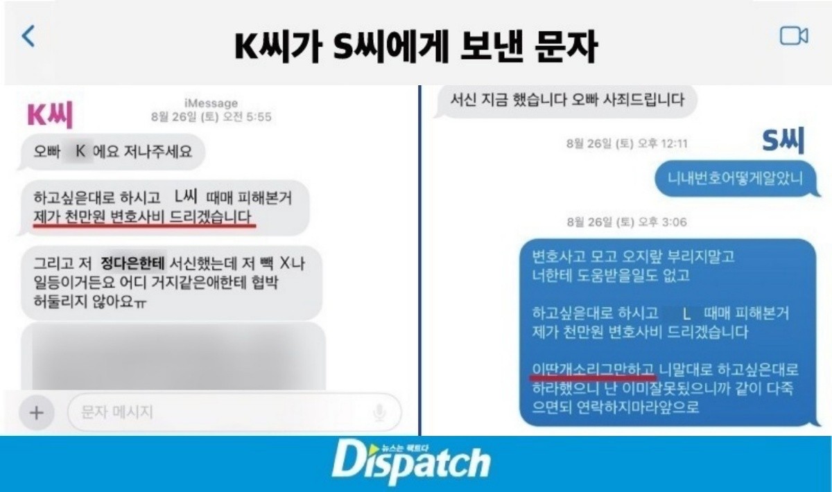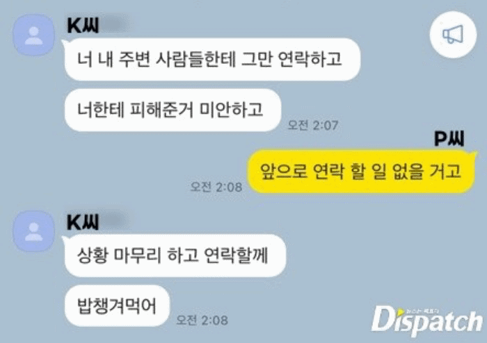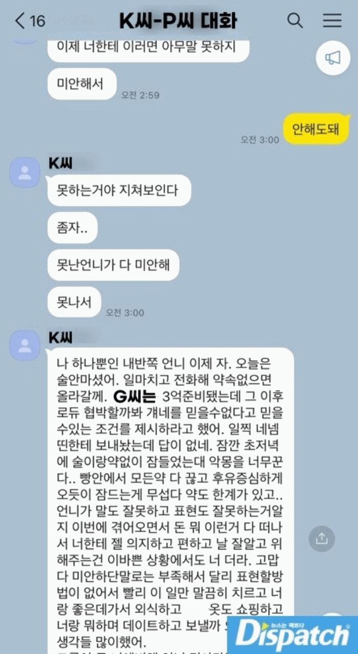 "너한테 피해준 거 미안하고. 밥 챙겨 먹어" (K씨)