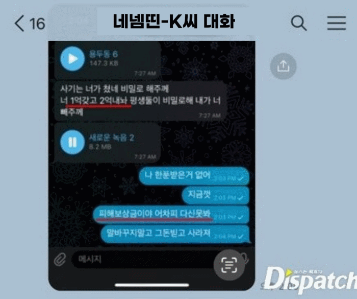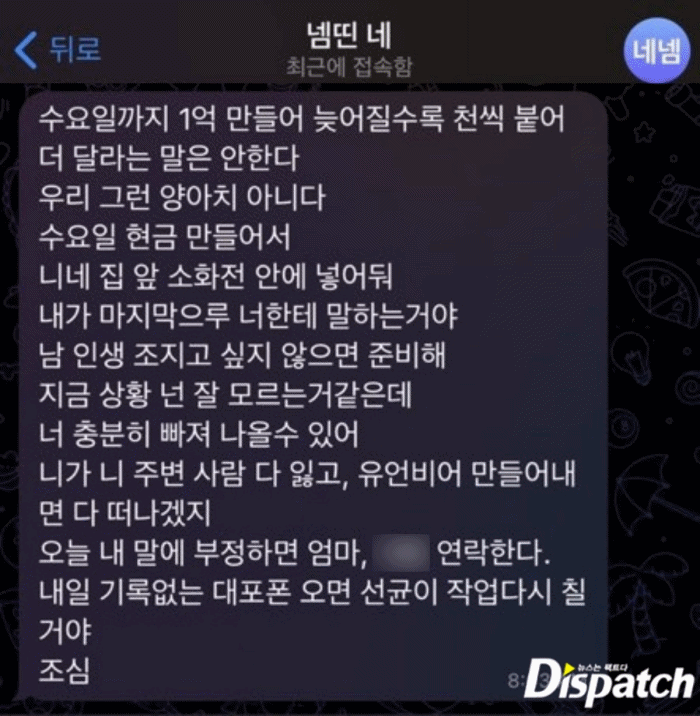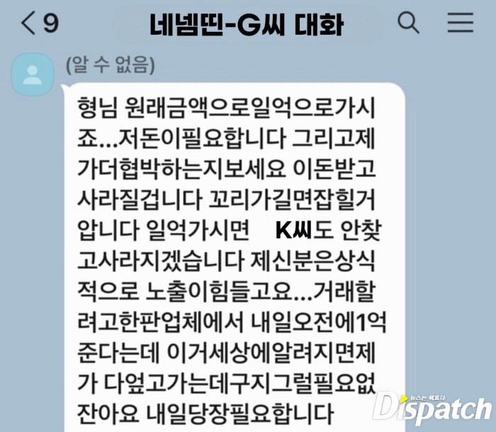 "(네넴띤이) 3억만 주면 다신 협박하지 않겠대."