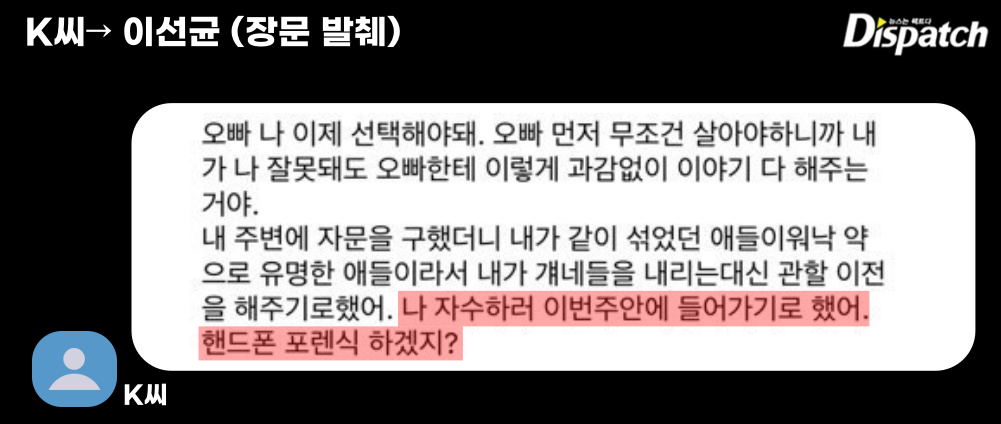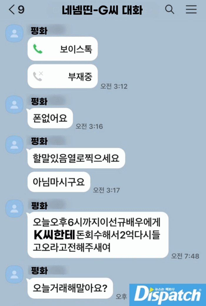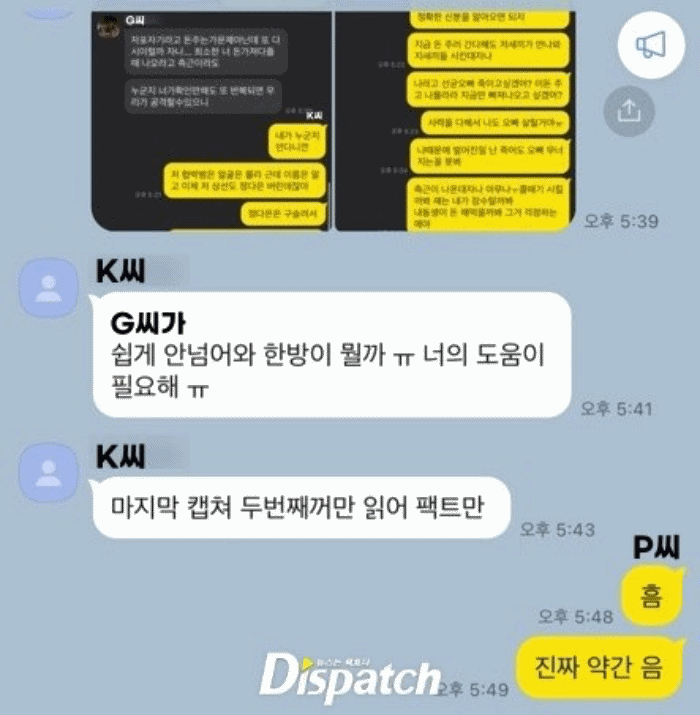 그는 이선균 측근인 G씨에게 카톡을 보냈다.