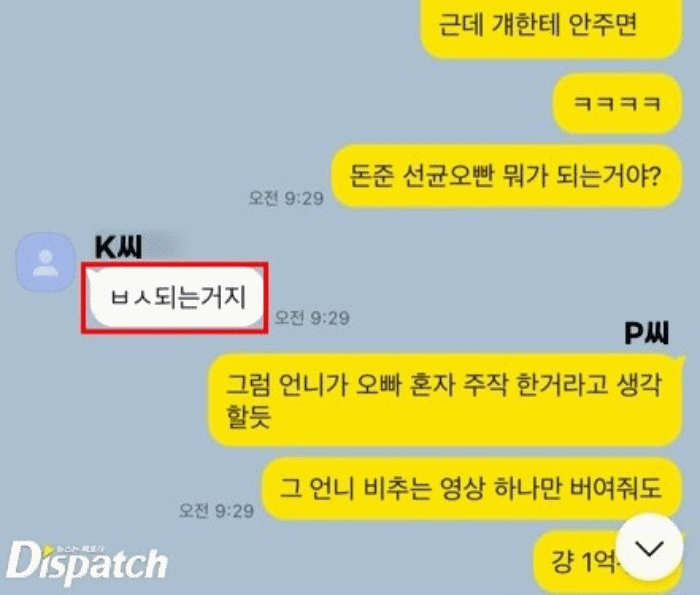 K씨는 "ㅂㅅ 되는거지"라고 말했다.