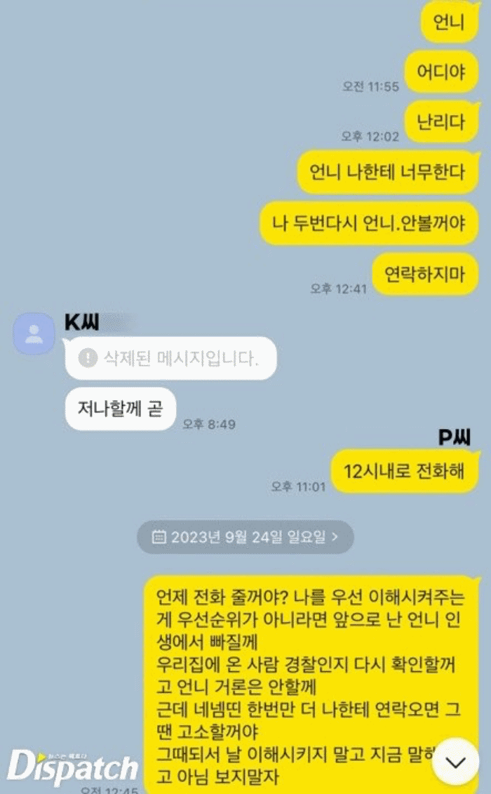 "언니 어디야? 나한테 너무한다. 연락하지마" (P씨)