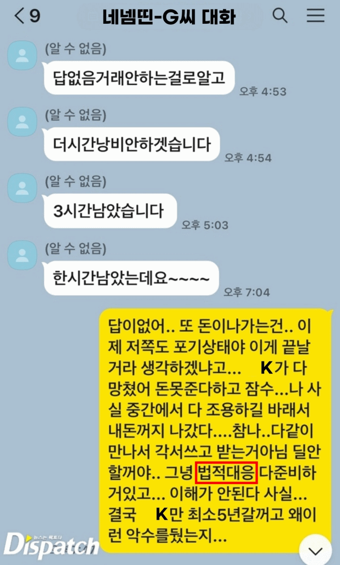 "그냥 법적대응 준비한 거 할래" (G씨)