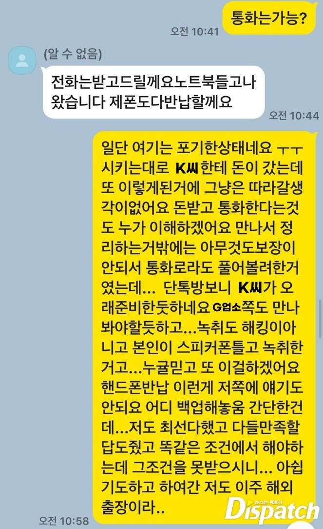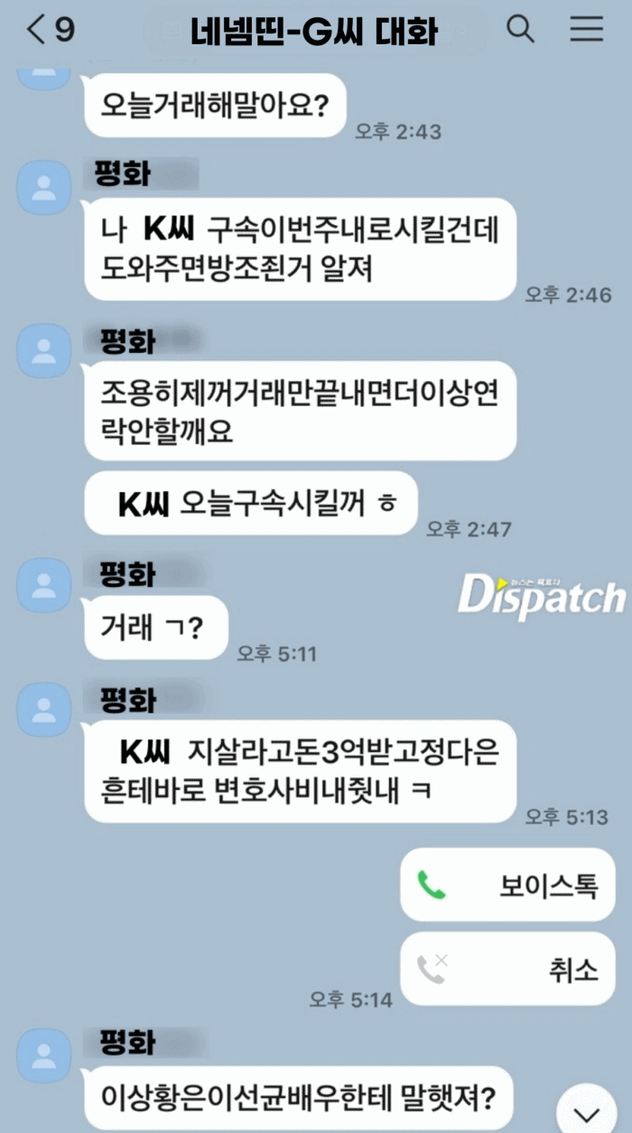 그는 이선균 측근인 G씨에게 카톡을 보냈다.