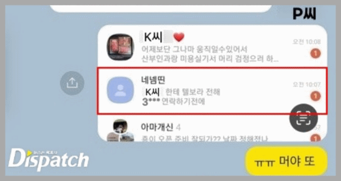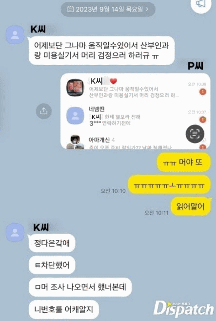 P씨는 해당 카톡을 캡처, K씨에게 전했다.
