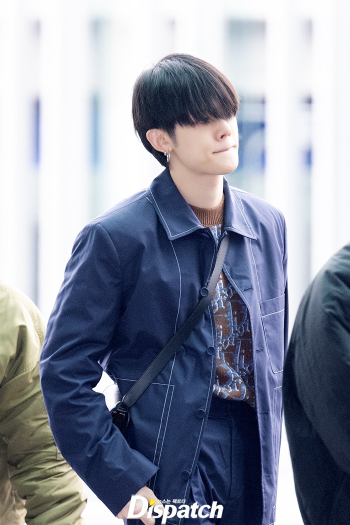 연준은 이날 네이비 셋업으로 댄디한 공항패션을 연출했다. 훈훈한 비주얼도 돋보였다.