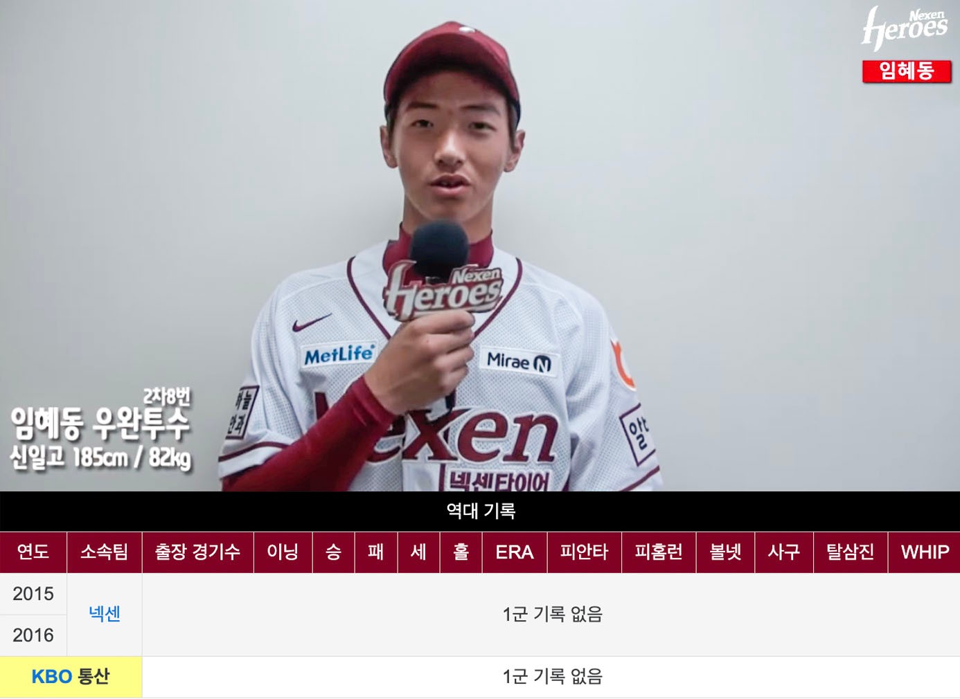 임혜동은 프로야구 선수 출신이다. 2015년 넥센 히어로즈(현 키움)에 입단했다. 계약금 6,000만 원. 연봉은 2,700만 원이었다.