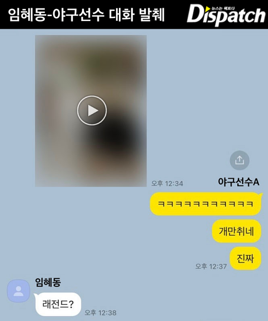 '야구선수' A씨는 '디스패치'에 "내게도 자랑한다며 전송했었다"며 "친하다고 자랑하던 영상이 협박용으로 쓰일지 상상도 못했다"고 전했다.