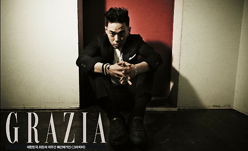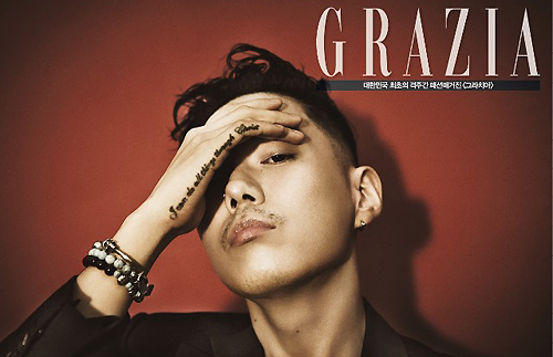 컨셉은 터프했다. 블랙 컬러의 수트를 입고 카리스마 넘치는 모습으로 카메라를 응시했다. 화려한 악세서리와 타투는 상남자의 매력을 더했다.
