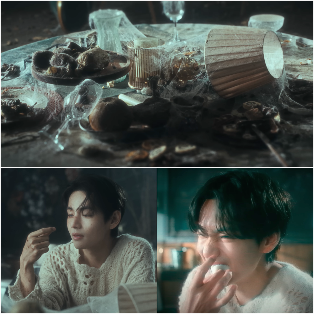 아이유와 뷔는 남루한 행색이다. 얼굴에는 상처가 가득하다. 뷔의 한쪽 눈이 백색이다. 아이유의 입술에는 체인이 걸려있다. 그는 말을 하지 않고 행동으로 소통했다.