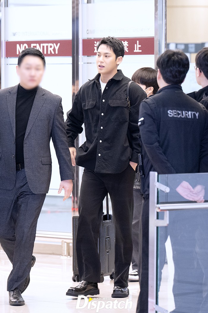 민규는 이날 올블랙 룩으로 댄디한 공항패션을 연출했다. 조각같은 비주얼이 돋보였다.