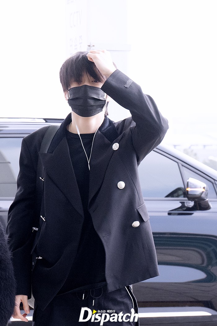 재현은 이날 올블랙 룩으로 시크한 공항패션을 연출했다. 훈훈한 비주얼도 돋보였다.