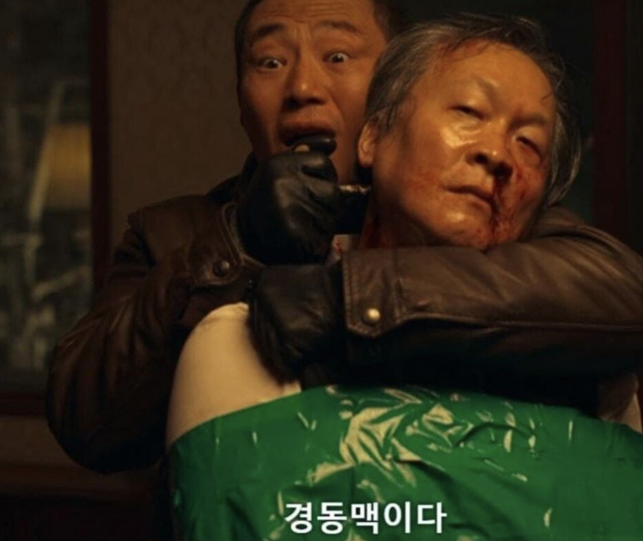 송촌(이희준 분)이 형 회장 목 부위에 흉기를 들이대면서 "경동맥"이라고 말하는 장면도 짚었다. 최근 이 대표 피습 상황을 떠올리게 한다고 말했다.
