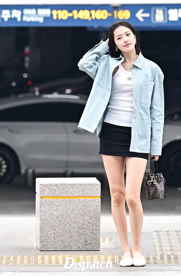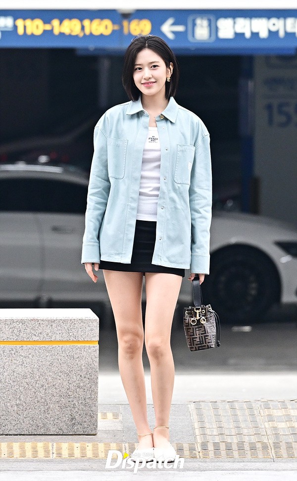 안유진은 블루 컬러의 재킷과 심플한 티셔츠, 짧은 미니스커트로 눈부신 미모를 뽐냈다. 완벽한 비율과 러블리한 비주얼이 시선을 사로 잡았다.