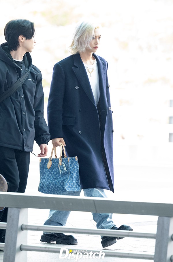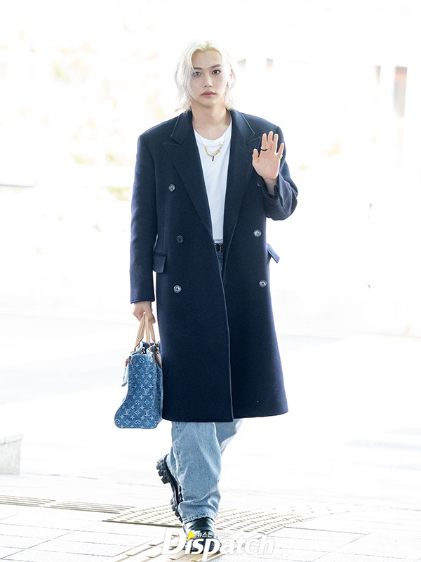 필릭스는 롱코트와 빅백으로 패션을 완성했다.