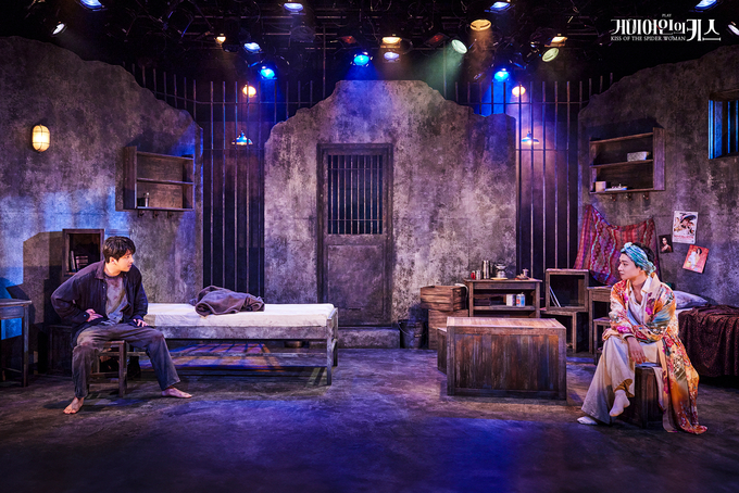 깜깜했던 무대에 조명이 켜지면, 좁은 감옥이 드러난다. 침대엔 발렌틴(차선우 분)가 누워있고, 몰리나(정일우 분)가 이야기를 시작한다.