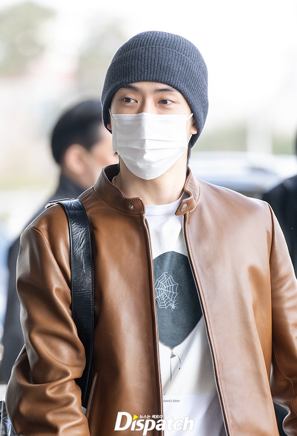 재현은 비니와 가죽자켓으로 스타일을 완성했다.