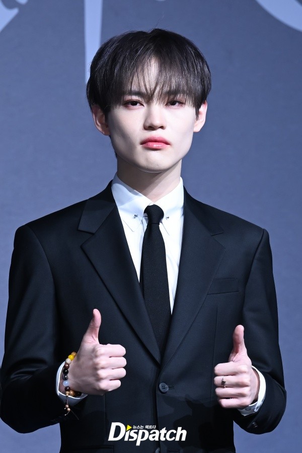 엔시티 드림은 블랙 수트로 멋을 냈다. 천러는 잘생긴 비주얼로 시선을 사로잡았다.