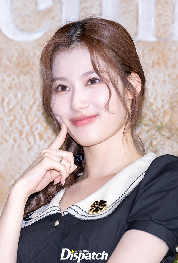 사나는 깜찍한 꽃받침 포즈로 시선을 사로잡았다.