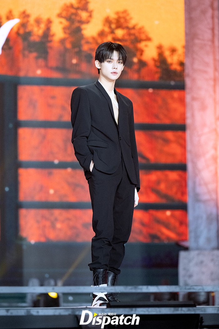연준은 이날 블랙 수트로 시크한 매력을 뽐냈다. 조각같은 비주얼이 돋보였다.