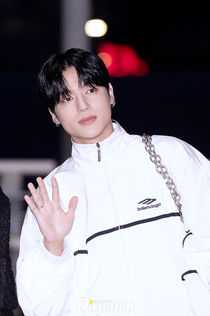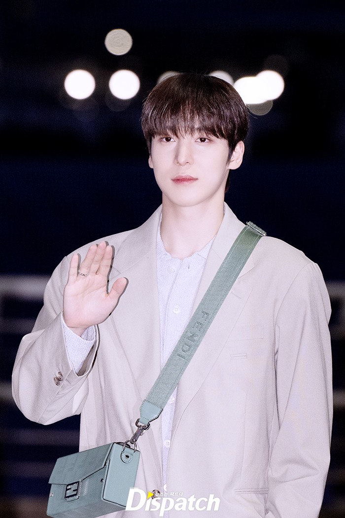에이티즈는 이날 환한 미소로 출국장에 들어섰다. 공항에 모인 취재진과 팬들을 향해 인사로 화답했다.