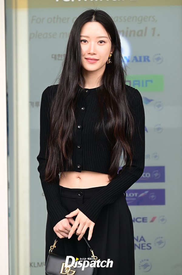 문가영은 올블랙 스타일로 시크한 매력을 뽐냈다. 흐린 날씨에도 눈부신 비주얼로 출국장을 나섰다.
