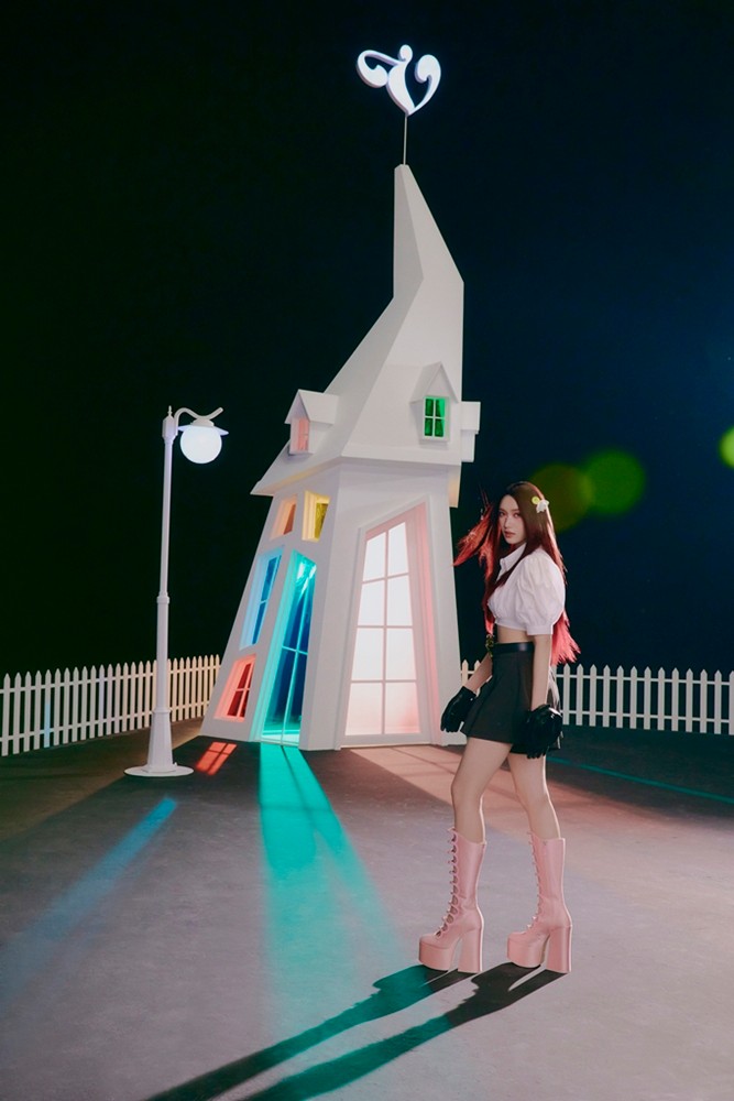 통일된 콘셉트지만 각자의 개성은 살아 있었다. 장원영은 짙은 레드컬러 헤어로 고급스런 느낌을 줬다. 도도한 표정 연기가 포인트.