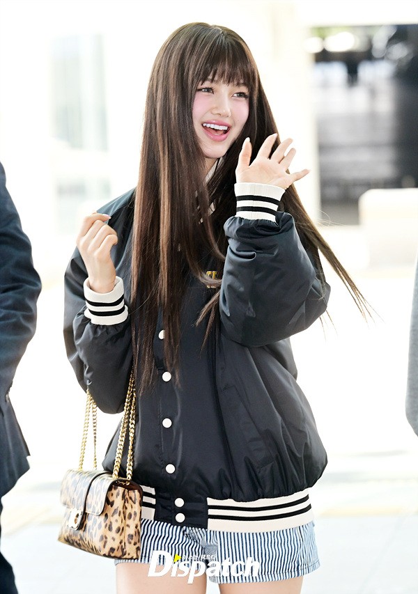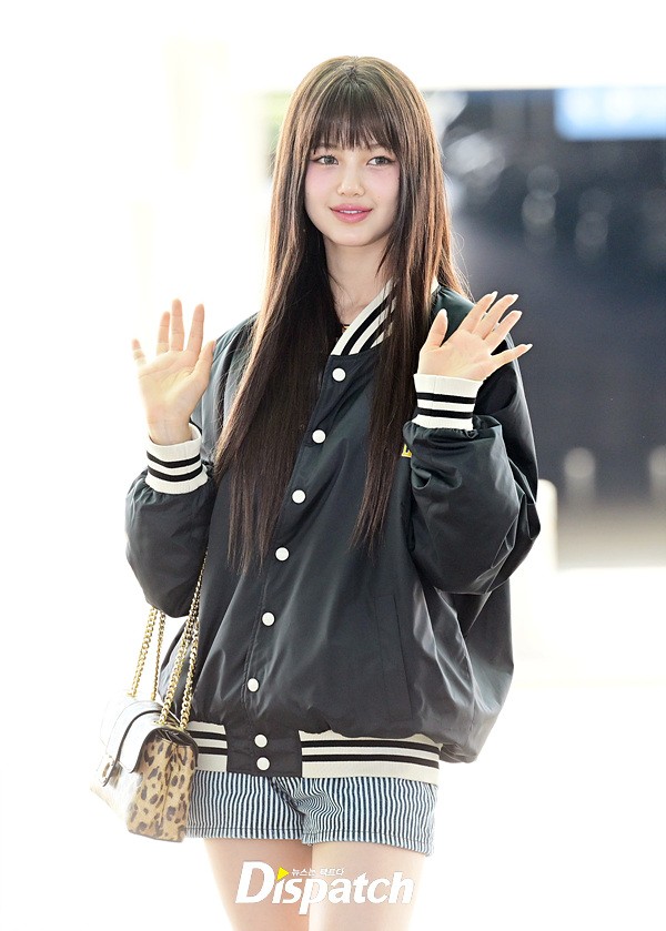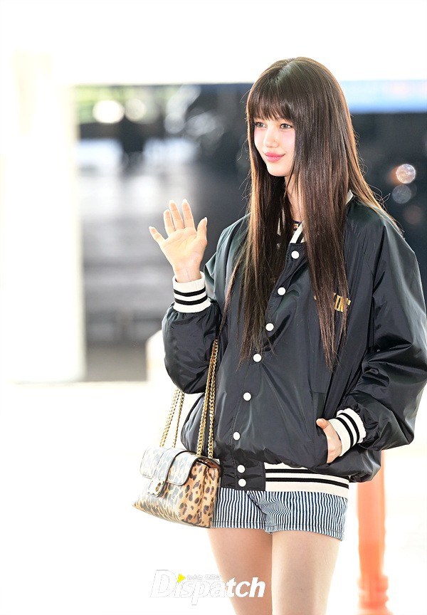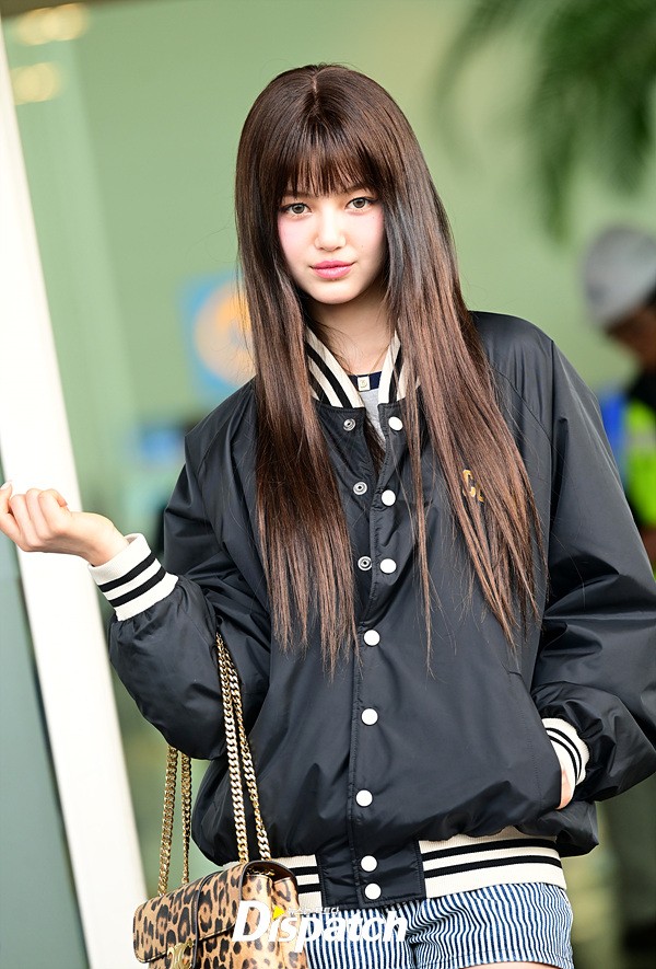 다니엘은 야구재킷과 핫팬츠로 상큼한 공항패션을 완성했다. 요정같은 비주얼과 상큼한 미소가 돋보였다.