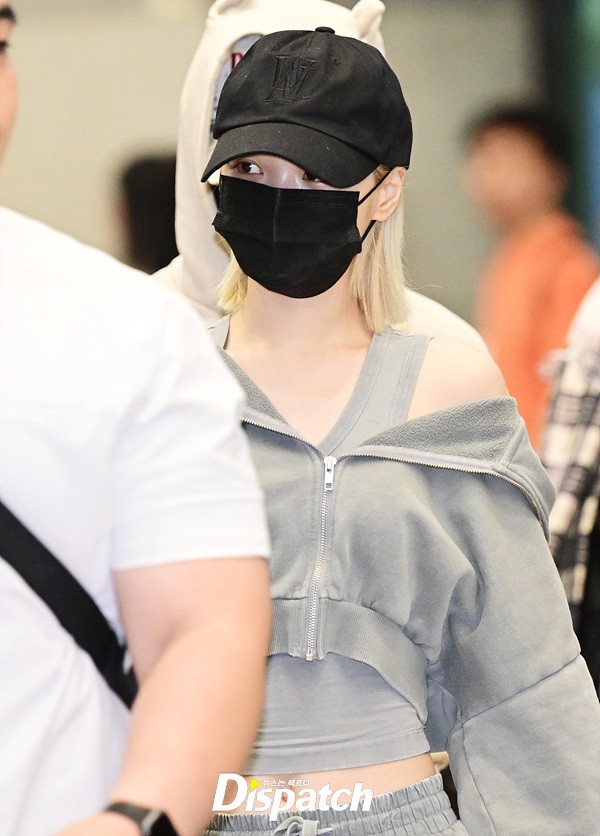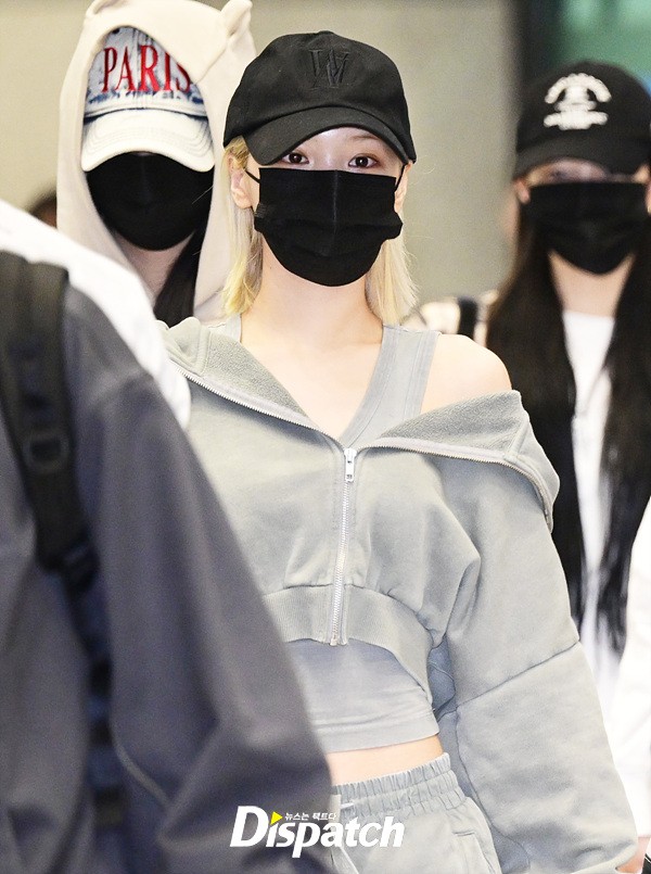 김채원은 심플한 트레이닝 패션으로 입국장을 나섰다. 모자와 마스크에도 또렷한 이목구비가 시선을 모았다.