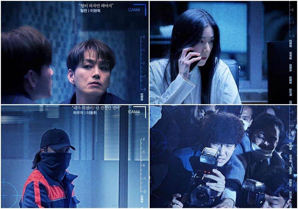 '월천'(이현욱 분)은 영일을 향한 신뢰와 탁월한 위장 실력을 예고했다. 사이버 렉카 '하우저'(이동휘 분)는 두건을 쓴 모습. 예측할 수 없는 변수를 더할 것을 귀띔했다.