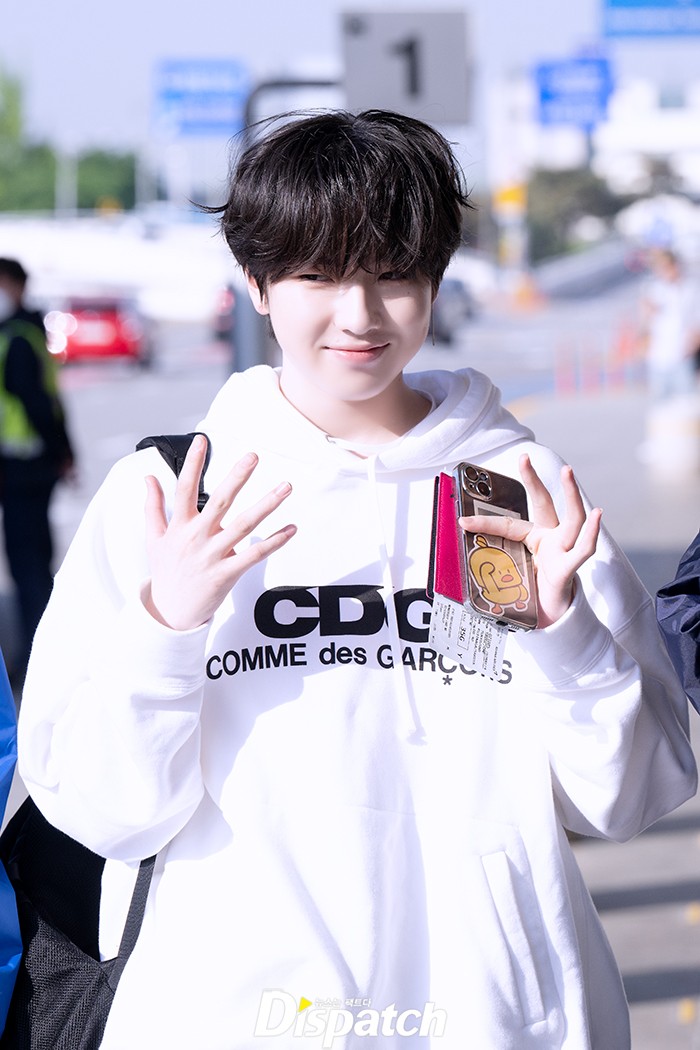 사쿠야는 워크 팬츠에 화이트 후드로 훈훈한 공항패션을 연출했다. 깜찍한 비주얼도 돋보였다.