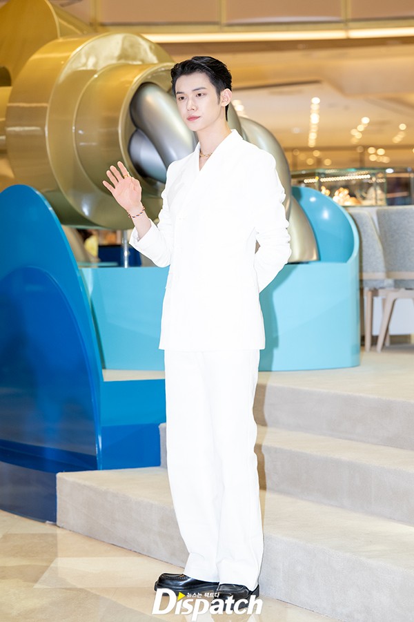 연준은 화이트 수트로 깔끔한 멋을 냈다. 완벽한 비주얼로 눈길을 사로잡았다.