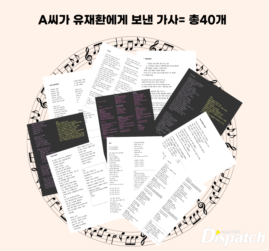 A씨는 유재환의 개인계좌로 130만 원을 송금했다. 그리고 직접 쓴 가사 3개도 함께 보냈다.