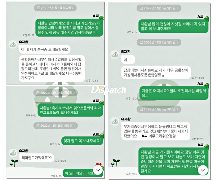 유재환 : 답장이 늦어서 죄송해요. 제가 공황장애가 심해서 폰도 못봤어요.