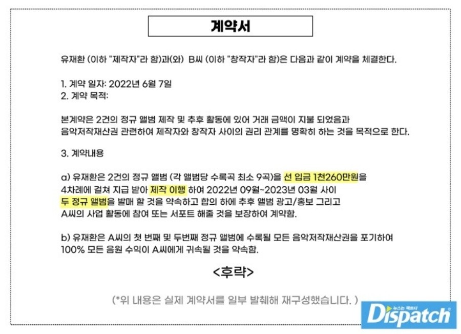결국, A씨는 유재환에게 1,000만 원을 보냈다. 대신, 계약서를 쓰자고 말했다. 지금까지 보낸 돈, 1,260만 원에 대한 작업 및 권리 계약서.
