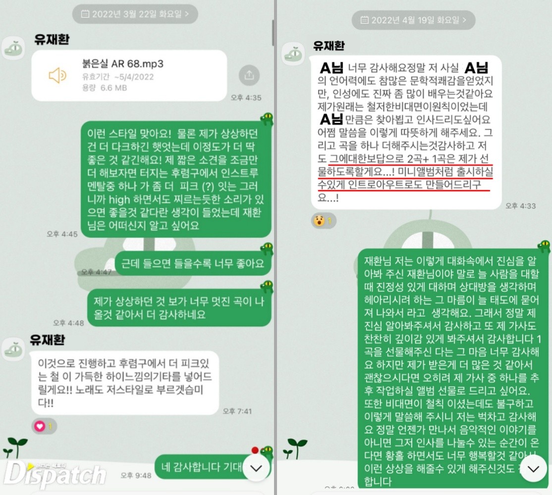 A씨는 유재환과의 작업이 순조롭게 진행된다고 생각했다. 그는 4월, 추가 작업을 문의했다. 1곡을 더 받고 싶다는 욕심이 생긴 것.
