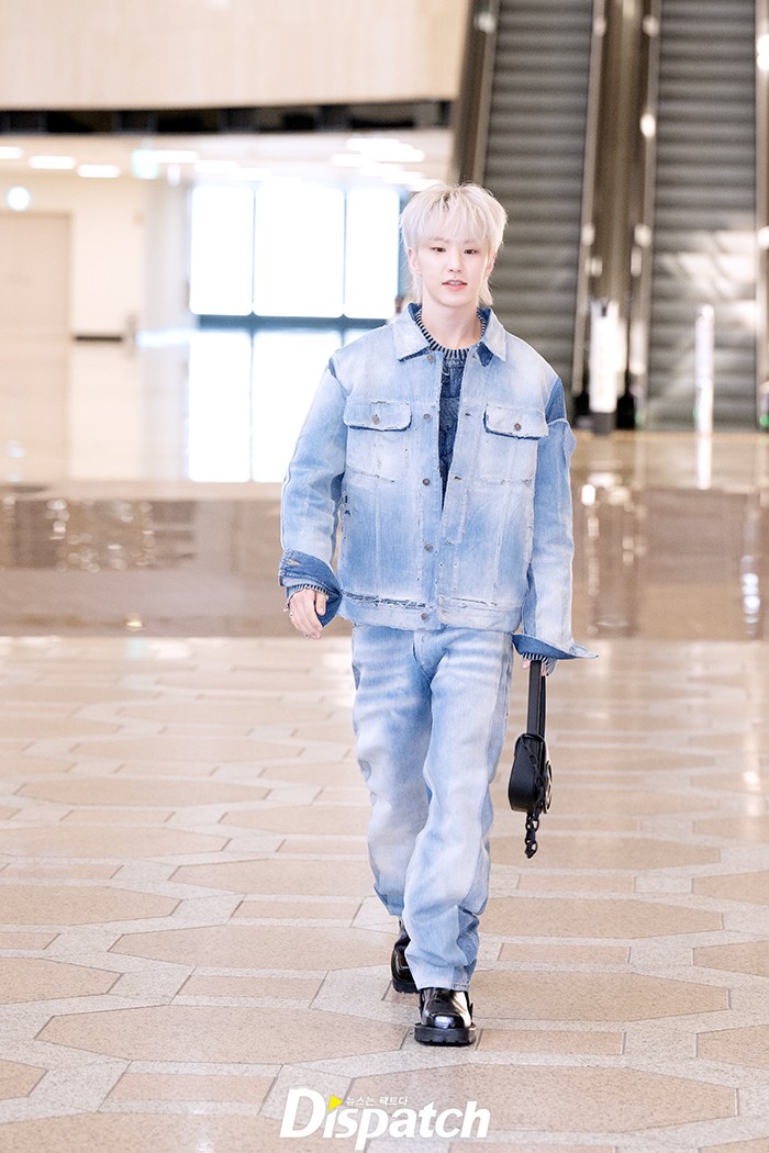 호시는 이날 청청 패션으로 시크한 공항패션을 연출했다. 훈훈한 비주얼도 돋보였다.