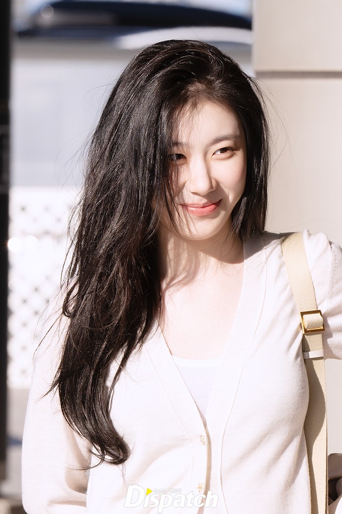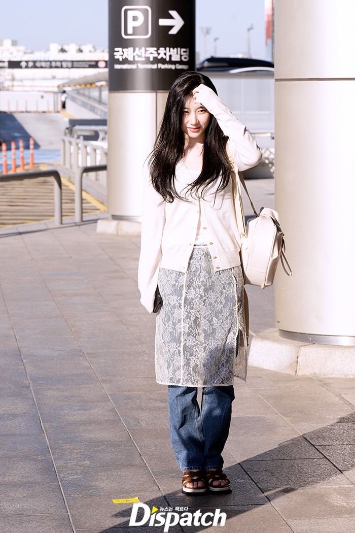 채령은 이날 청바지에 카디건을 매치해 수수한 공항패션을 연출했다. 우아한 미모가 돋보였다.
