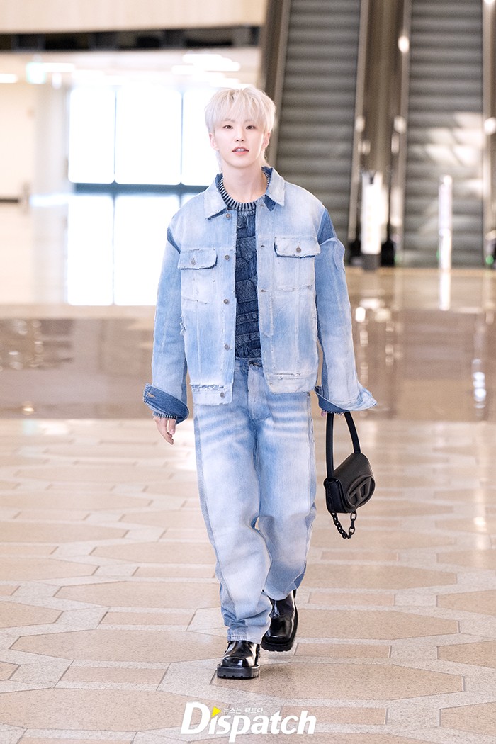 호시는 이날 청청 패션으로 시크한 공항패션을 연출했다. 훈훈한 비주얼도 돋보였다.