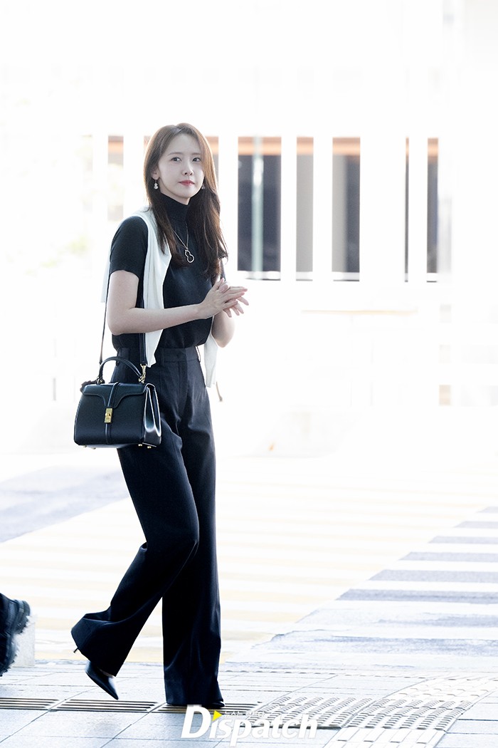 윤아는 이날 올블랙 룩으로 시크한 매력을 뽐냈다. 인형같은 미모가 돋보였다.