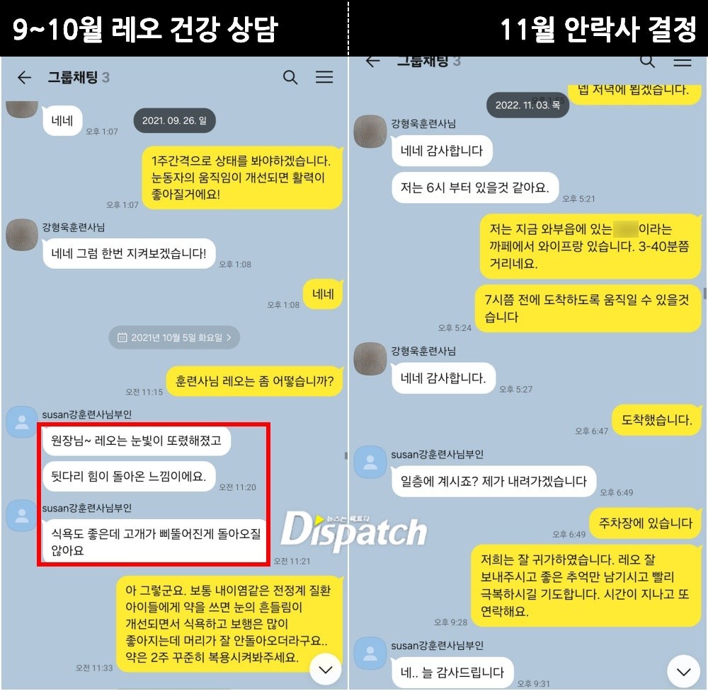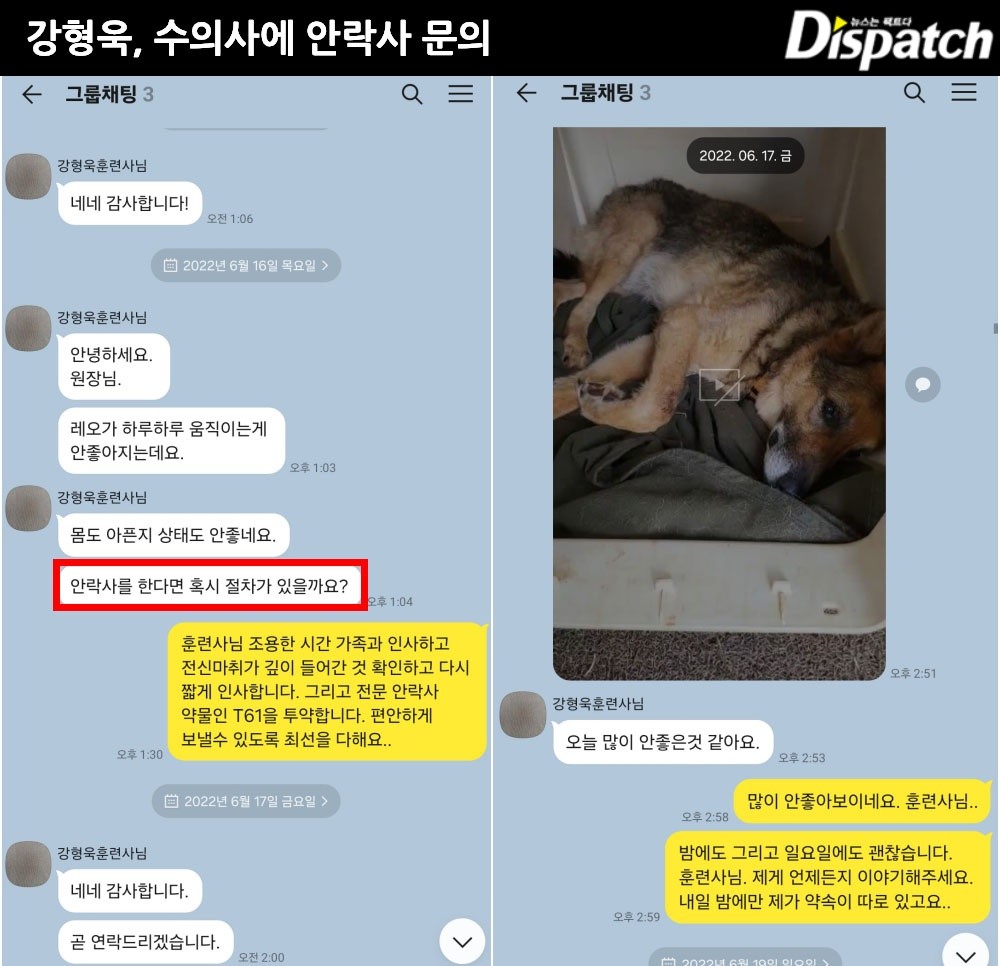 ③ 안락사 : 강형욱은 2022년 6월부터 안락사를 고민했다. 다음은, 담당 수의사가 '디스패치'에 전한 카톡이다.