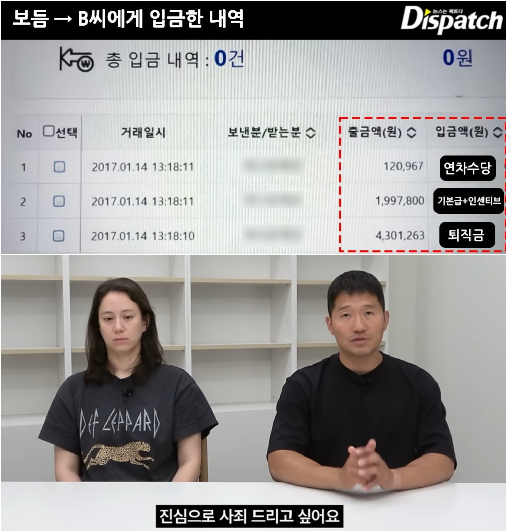 (강형욱이 보낸 돈은, 642만 30원이다. 기본급+인센 199만 7,800원, 연차수당 12만 967원, 퇴직금 430만 1,263원. 노동청 신고 이후에 지급됐다.)