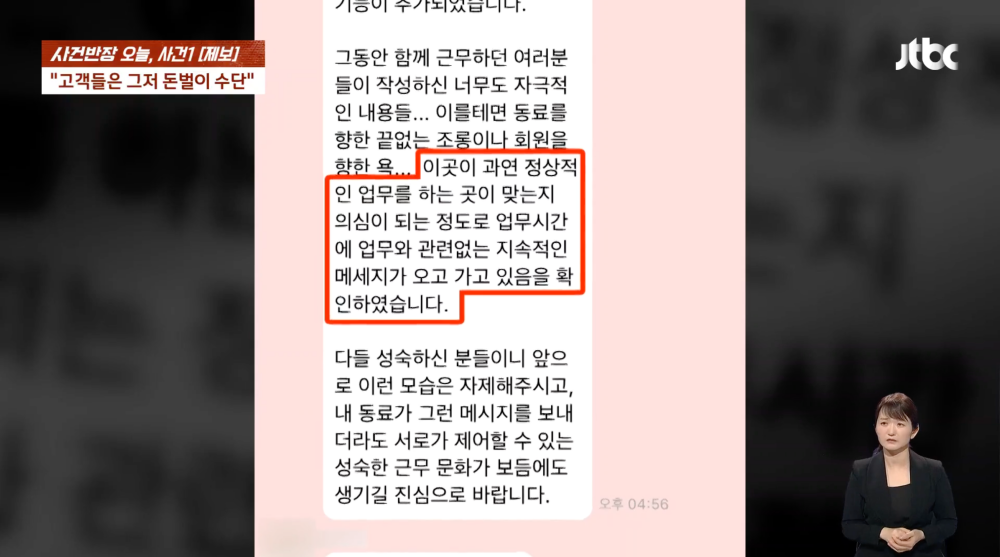 "여자 팀장을 제외한 나머지 3명이 주도했습니다. 가장 심하게 욕한 직원은 스스로 퇴사를 했고요. 1명은 그 이후에도 5~6년 정도 더 다녔고요. 변명으로 들리겠지만, 그럴 수밖에 없었습니다."