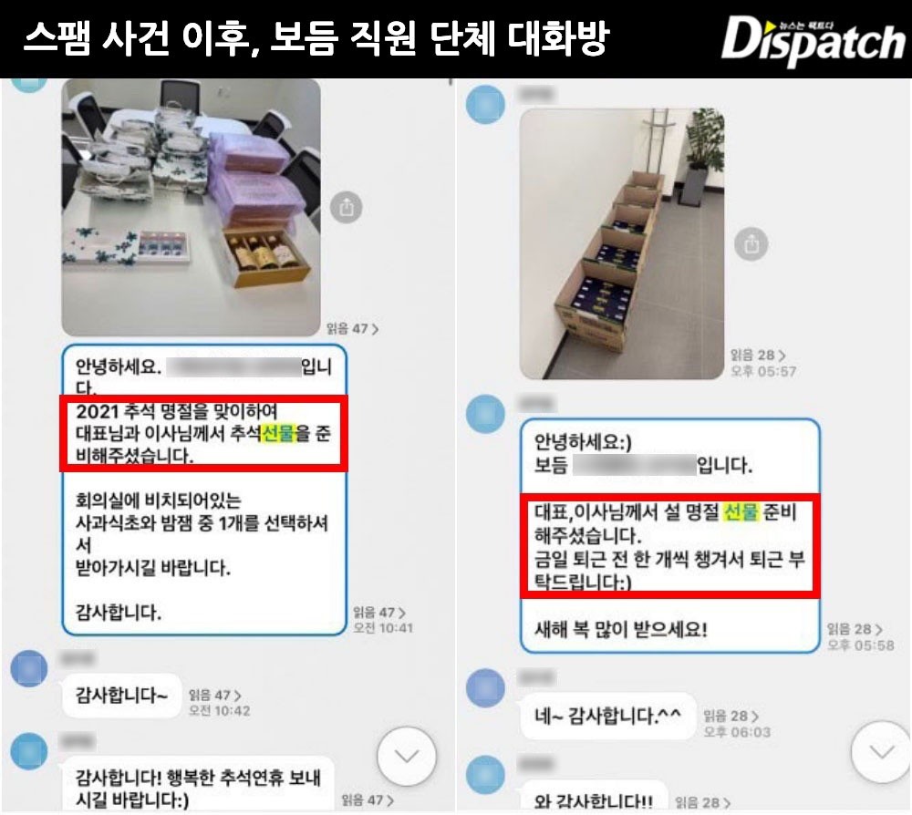 [Dispatch=김소정·구민지기자] 명절 선물로 스팸을 나눠줬다. 하지만, 봉투가 문제였다.