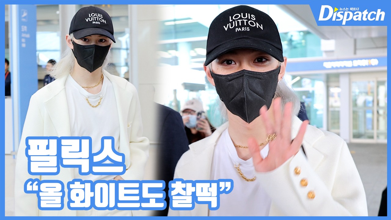 이날 필릭스는 화이트 티셔츠, 재킷, 팬츠로 화사하면서도 멋진 자태를 뽐내며 입국장을 나섰다. 모자와 마스크 사이로 보이는 달달한 눈웃음으로 취재진의 이목을 사로잡았다.