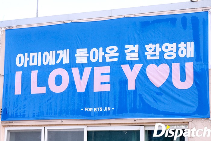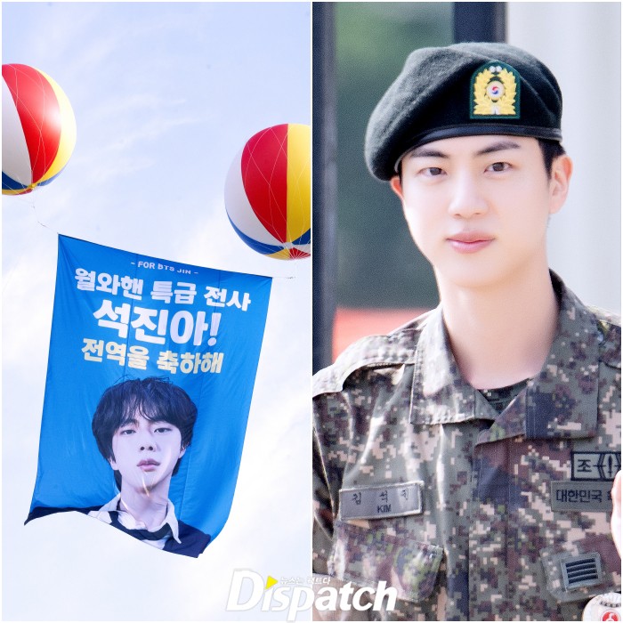 한편, 진의 다음 순서는 제이홉이다. 오는 10월 전역을 앞두고 있다. 방탄소년단 완전체는 내년 6월 이후에 볼 수 있다.
