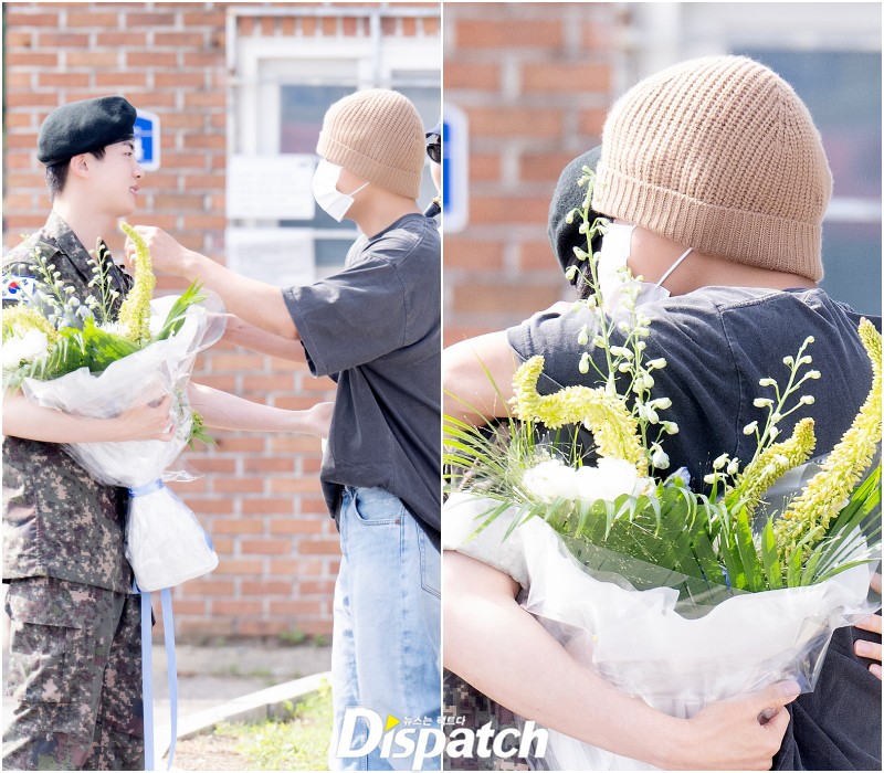 슈가를 제외한 RM, 제이홉, 정국, 뷔, 지민이 함께 부대를 찾아 진의 전역을 축하했다.